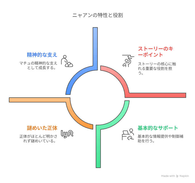 - ニャアンは感情認識機能を持ち、物語のキーポイントとなる存在